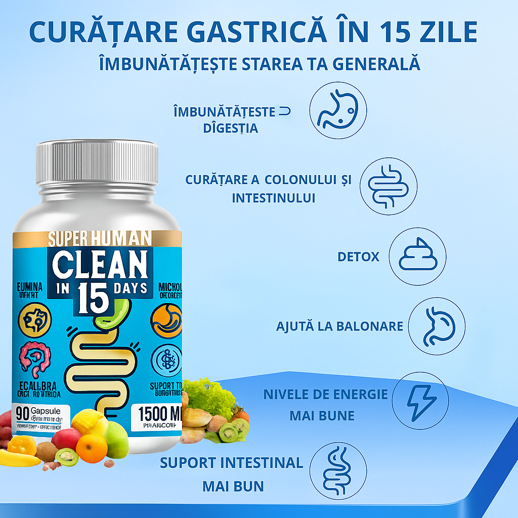 Clean15™ Curățare Completă a Stomacului în 15 zile (90 Capsule) SuperHuman™